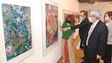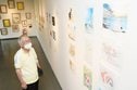 絵画教室に通う小学生から70代の6人と、講師の版画家、足立順子さんと娘のSHOKOさん、照(てらす)さんの作品約60点を展示した。