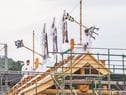 市教育委員会文化財課によると、市は06年に城跡の復元整備基本計画を策定。城の玄関に当たる大手登城路から着手し、そのうち擬宝珠(ぎぼし)橋は18年、中ノ御門(なかのごもん)大手門は21年に復元を終えた。現在その隣の中ノ御門渡(わたり)櫓門の復元を進めており25年春に完成予定。その後さらに奧の太鼓御門を復元して大手登城路を整え、それ以降に二ノ丸三階櫓の復元を描いていた。