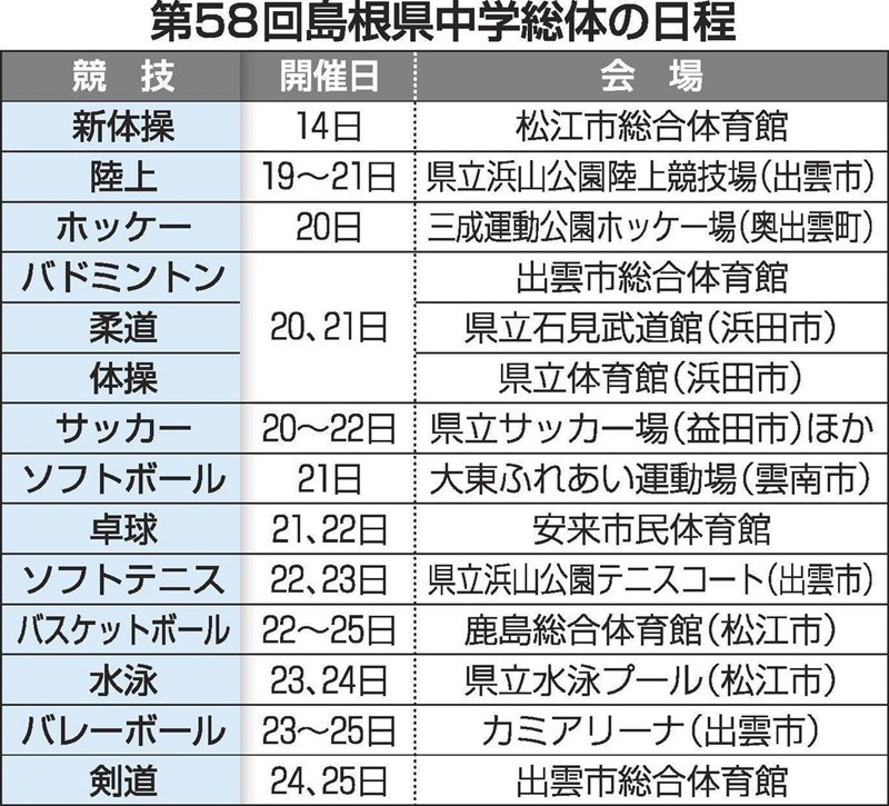 第58回島根県中学校総合体育大会が14日に開幕した。新体操を皮切りに14競技で熱戦が繰り広げられた。