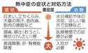安来市消防本部によると、成人男性1人が屋外でふらついているのを通行人が発見し、119番。搬送時には意識がなかったという。両県内で搬送されたほかの11人は軽症から中等症だった。