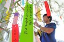 ササなど七夕らしい風情の中での茶会が6日、浜田市金城町今福の今福まちづくりセンターであり、来場者が猛暑の中で至福の一杯を味わった。