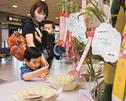 アジサイや短冊の付いたササが会場を彩り、着物姿の茶楽の会メンバーが入れたお茶を、地元の小学生や高校生が茶席に届けた。来場者は作法や茶器の説明を聞きながら、わんを傾け笑顔で一服を堪能した。