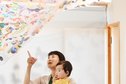 天蓋(てんがい)に色とりどりのチョウが縫い付けられ、光を受けて壁や床にチョウの影ができる工夫がされている。