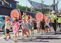 児童は27日、赤屋交流センター前である盆踊り大会に参加する。6年の秋庭颯太さん(12)は「昨年より上手にできた。大会を楽しみます」と笑顔で話した。(狩野樹理)