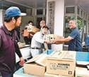 出雲市が11日、大社町日御碕地区への支援物資を大社漁港(出雲市大社町杵築北)から船で運んだ。