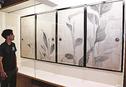 松江藩の鉄師を務めた櫻井家の歴史と文化を紹介する可部屋集成館(島根県奥出雲町上阿井)で、夏季展「南画家・田能村直入とその一門」が開かれている。田能村が櫻井家に滞在した際、描いた掛け軸などが並び、来館者がじっくり鑑賞している。