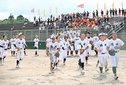 開会式では出場38チーム(39校)が行進し、松江南の山本柊人主将が選手宣誓。試合が始まると観客から大きな声援が送られた。