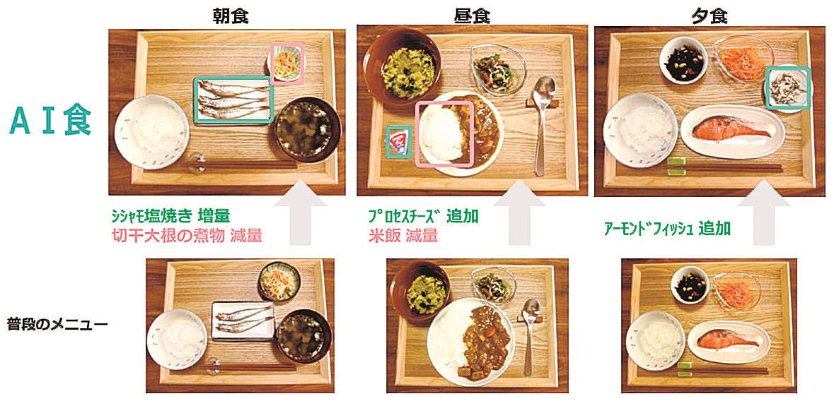 AIは、1日3食の中で炭水化物を28グラム減らし、タンパク質を10グラム増やすと血圧を下げる効果があると分析した。通常の食事内容とカロリーを大きく変えない範囲でAIが提案したメニューは「ししゃもを2匹から3匹に増やし、チーズ1個とアーモンドフィッシュ1袋を追加。白米と切り干し大根を3分の2に減らす」だった。