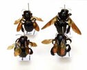 会場にはハチの大型模型が複数あり、体の毛の一本一本を再現したニホンミツバチの200倍模型や、下からのぞいて観察できるオオスズメバチの20倍模型が並ぶ。虫やクモを狩って幼虫の餌にするカリバチや花の蜜や花粉を餌にするハナバチなど、さまざまなハチの種類と特徴を標本とともに解説する。