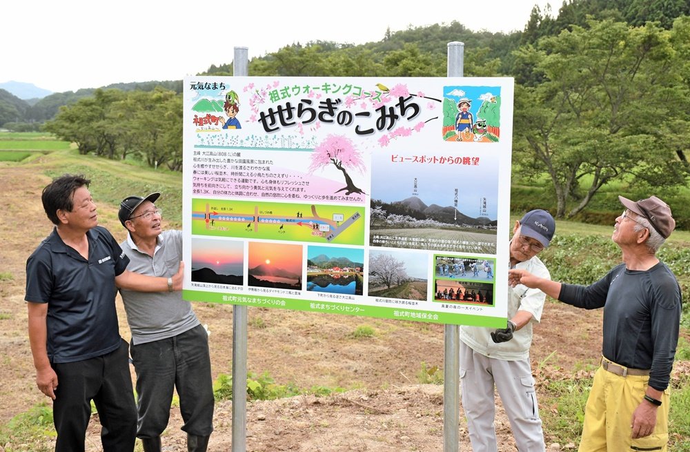 金田慶三副会長(70)は「川の音を聞きながら歩けるコース。四季を通じて楽しめ、祖式町の魅力を感じてもらいたい」と話した。