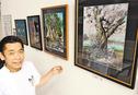 【出雲】松江市母衣町、松江赤十字病院内の理容室で50年以上にわたって勤める高見秋彦さん(79)=松江市西津田10丁目=が、出雲市姫原4丁目の島根県立中央病院1、2階外来ロビーで個展を開いている。繊細なタッチで描かれた水彩画14点が患者らの目を楽しませている。8月27日まで。