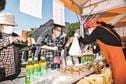 7メートルの高さに延びる高所作業車やミニバックホーなどの重機、パトカーや消防車両といった働く車が集まったブースは、親子連れが車両に乗ったり、写真を撮ったりして楽しんだ。金魚すくいや射的などの縁日コーナーもあった。