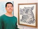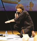 21日は米子東高校書道部と福米中学校吹奏楽部によるパフォーマンスもあった。書道部員17人が演奏に合わせて企画展のタイトルと「魂を繋(つな)ぐ 創 私達の軌跡をこの一筆に込めて」というメッセージを書き上げると、美術館のホールを埋め尽くす見物客から大きな拍手が起こった。