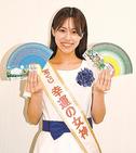 宝くじの「幸運の女神」を務める福永愛莉(あいり)さん(27)=大阪府枚方市在住=が23日、松江市殿町の山陰中央新報社を訪れ、1等と前後賞合わせて7億円が当たる「サマージャンボ宝くじ」をPRした。