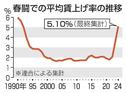 賃上げ過去最大 連合島根、2736円増8914円 24年春闘 山陰 2024/7/26 04:00 保存 連合島根がまとめた2024年春闘の最終回答(単純平均、6月30日時点)は、基本給を一律に引き上げるベースアップと定期昇給を合わせた平均妥結額が前年比2736円増の... 残り738文字(全文:820文字) 続きを読むには会員登録が必要です 無料会員に登録する ログインする 保存 記事を保存する この機能は有料会員限定です。保存した記事やフォローした特集をマイページでご覧いただけます。 有料会員になる ログイン 関連記事 夏の大手賞与 過去最高 3年連続増、98万円 経団連第1回集計 2024/7/13 04:00 春闘の賃上げ率5.10% 連合最終集計33年ぶり大台 2024/7/4 04:00 春闘賃上げに地域間格差 33道府県集計 中小企業低く 内閣府 2024/6/28 04:00 中小、人材確保に広がる不安 運輸や医療・介護低調 2024/6/6 04:00 高水準賃上げ 若手に集中 3%台半ば、つなぎ留めか 内閣府分析 2024/5/28 04:00 特集・連載 内面に向き合い、軽くなった心 同じ悩みを抱える人に寄り添う 自傷行為をやめられなかった女性(4)〈顔なき…声〉 2025/12/1 10:00 目分量で打つ覚醒剤 「被害妄想」起こしパニックに 薬物依存症だった男性(3)〈顔なき…声〉 2025/9/4 18:00 妻と子にうそつき・・・ 育児のストレスから逃げパチンコ依存 ギャンブル依存症50代男性(1)〈顔なき…声〉 2025/5/16 04:01 島根、鳥取の上水道料金 地域差3万3千円の謎 全地域を調査 2025/5/4 04:01 集いと手仕事で、人生に彩りを 伊藤和子さん 花と人がつなぐ、斐川のオープンガーデン 出雲市斐川町 福島博さん 親も子も笑顔になれる場所――島根で暮らす選択肢 地域住民の懸け橋になった「西田にじいろ食堂」 運営スタッフ 出雲市万田町 小林春美さん