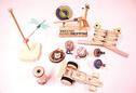 同館では31日まで、栗原さんが子どもたちと製作した木を使ったウエルカムボードや昆虫の置物、段ボールで製作した汽車などの作品約120点を展示している。