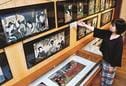 出雲市浜町、出雲文化伝承館でペットから猛獣まで動物たちが描かれた浮世絵約100点の企画展が開かれている。来館者は葛飾北斎や歌川広重といった人気の浮世絵師の作品を楽しんでいる。9月1日まで。