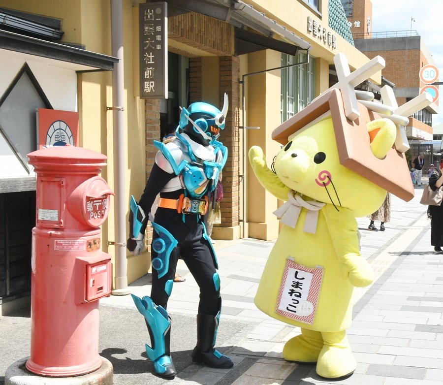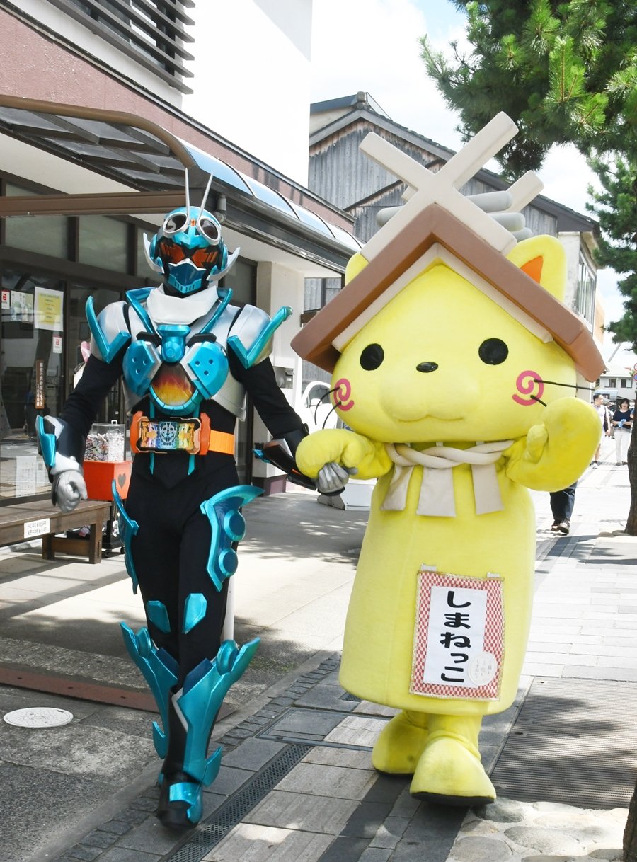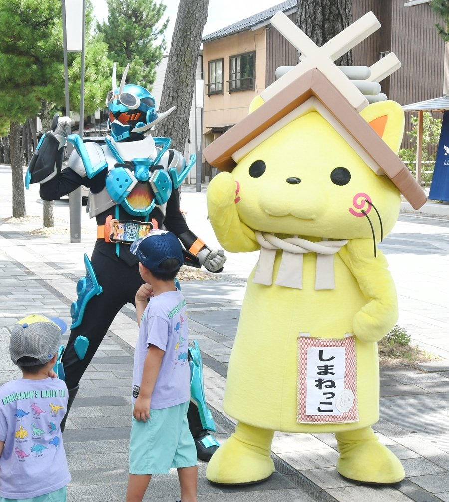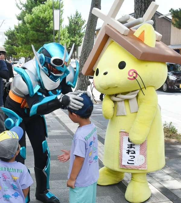 【動画・写真】ロケ地・出雲に仮面ライダーガッチャード参上! 神門通りでしまねっこと新作映画PR 子どもたちと記念撮影も 映画「仮面ライダーガッチャード ザ・フューチャー・デイブレイク」など2本立て 山陰 2024/7/26 19:00 保存 神門通りで観光客とポーズを決める仮面ライダーガッチャード(左)としまねっこ=出雲市大社町杵築南 観光客や住民と触れ合いながら、神門通りを歩くしまねっことガッチャードの様子を、写真で紹介する。 しまねっこを誘導するガッチャード=出雲市大社町杵築南 しまねっこの手を引くガッチャード=出雲市大社町杵築南 道端で男の子の頭をなでるガッチャード=出雲市大社町杵築南 しまねっこと二人でガッツポーツを決めるガッチャード=出雲市大社町杵築南 男の子とグータッチするガッチャード=出雲市大社町杵築南 しまねっこの話に耳を傾けるガッチャード=出雲市大社町杵築南 ガッチャードの決めポーズにうっとりするしまねっこ=出雲市大社町杵築南 しまねっこに向かう先を示すガッチャード=出雲市大社町杵築南 しまねっこの手を引き、先導するガッチャード=出雲市大社町杵築南 前へ 1 2 次へ 無料会員に登録すると 付き記事が毎月5本読める 無料会員に登録する ログインする サービス内容を確認する 保存 記事を保存する この機能は有料会員限定です。保存した記事やフォローした特集をマイページでご覧いただけます。 有料会員になる ログイン 関連記事 ガッチャード映画ロケ地で清掃 出雲の建設業者ら 2024/7/27 04:00 【写真】映画・仮面ライダーの重要シーンは島根 出雲、雲南で先月撮影 2024/6/24 10:01 仮面ライダーガッチャード、出雲・雲南で今月撮影 7月映画公開、ロケ地巡りPRへ 2024/5/9 04:00 成長物語の現代的な試み テレ朝系「仮面ライダーガッチャード」 2023/10/25 04:00 福間女流六冠「将棋界の未来不安」 出産「不戦敗」規定巡り 2025/12/11 04:00 特集・連載 竹島のアシカ猟 映像公開 領土・主権展示館拡張 2025/11/15 04:00 暴力団の兄貴分から誘われた「シャブ」 体が宙に浮いている感覚 薬物依存症だった男性(2)〈顔なき…声〉 2025/9/3 18:00 国要望が頓挫、独自条例へ 「竹島の日」条例制定尽力の故上代県議 住民の声、怒りを原動力に きょう20回目竹島の日 2025/2/22 04:00 「くまモン」のブランド戦略学ぶ 松江、島根大で教授講演 2024/12/6 04:00 地元で育つミライのチカラ 島根県立浜田商業高校 防水工事の気軽な相談先 和光工業㈱ 代表取締役社長 下川 茂雄氏 親子で楽しくエコを学べる体験型イベント! 「こどもエコミュージアム」を9月6日(土)に松江市で開催 歴史と人をつなぐ語り部 荒神谷ボランティアガイドの会 会員 長廻 三枝子さん