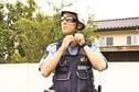 警察官の装備や資機材の体験では、交番に勤務する地域警察官が身に着ける防刃衣(ぼうじんい)や、警棒や手錠などを収納する帯革(たいかく)などを着用した。
