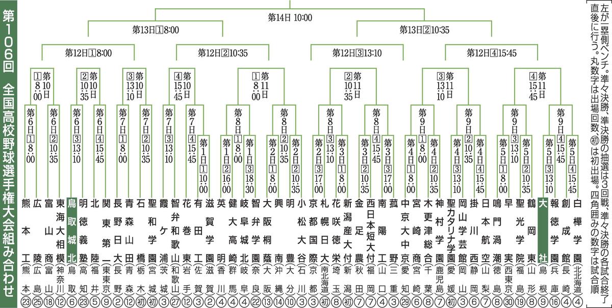 6年ぶり6度目となる鳥取代表の鳥取城北は第6日の12日、第3試合(13時10分開始予定)で明徳義塾(高知)と対戦する。