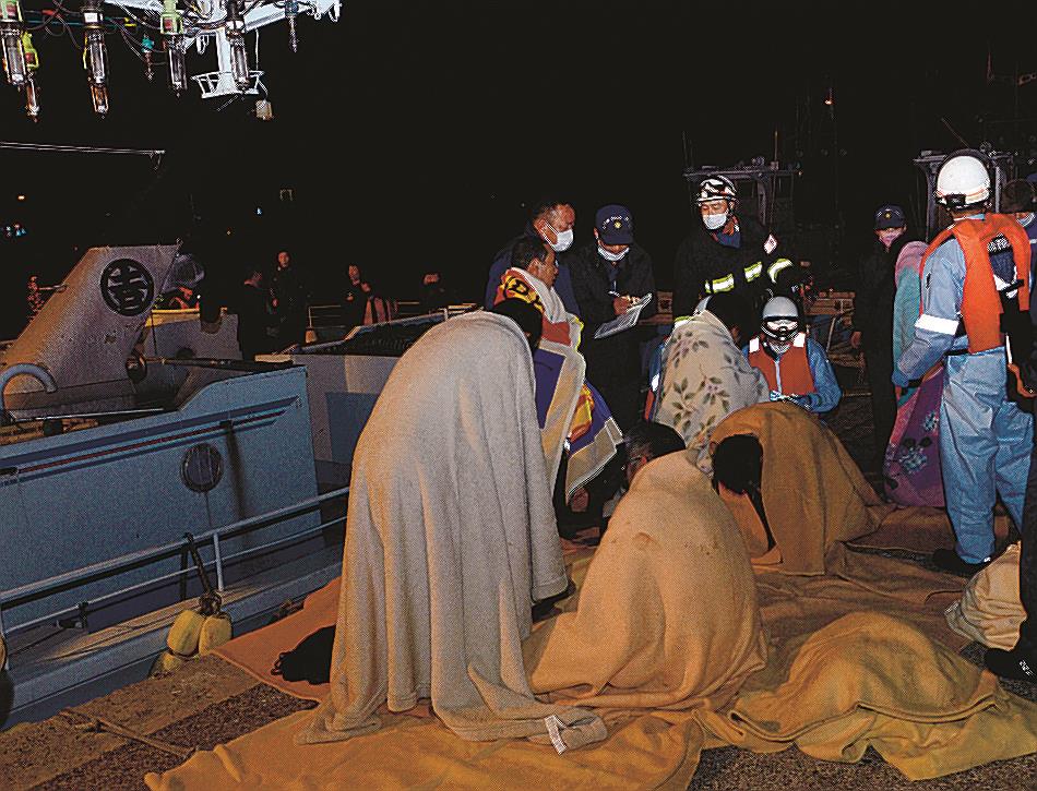 陸に上がり、ほっとしたのだろうか。携帯電話で話していた男性乗組員は「もう死んだかと思うたよ。家族の顔が浮かんだ」と漏らした。