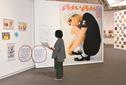 松江市袖師町、島根県立美術館で開催中の「『アンアン』『ポパイ』のデザイン 新谷雅弘の仕事」(山陰中央新報社など主催)の来場者が9日、1万人を突破した。節目に来場した鳥取市の公務員、徳田京子さん(59)と保育士、智子さん(28)親子に展覧会の資料集と記念品が贈られた。