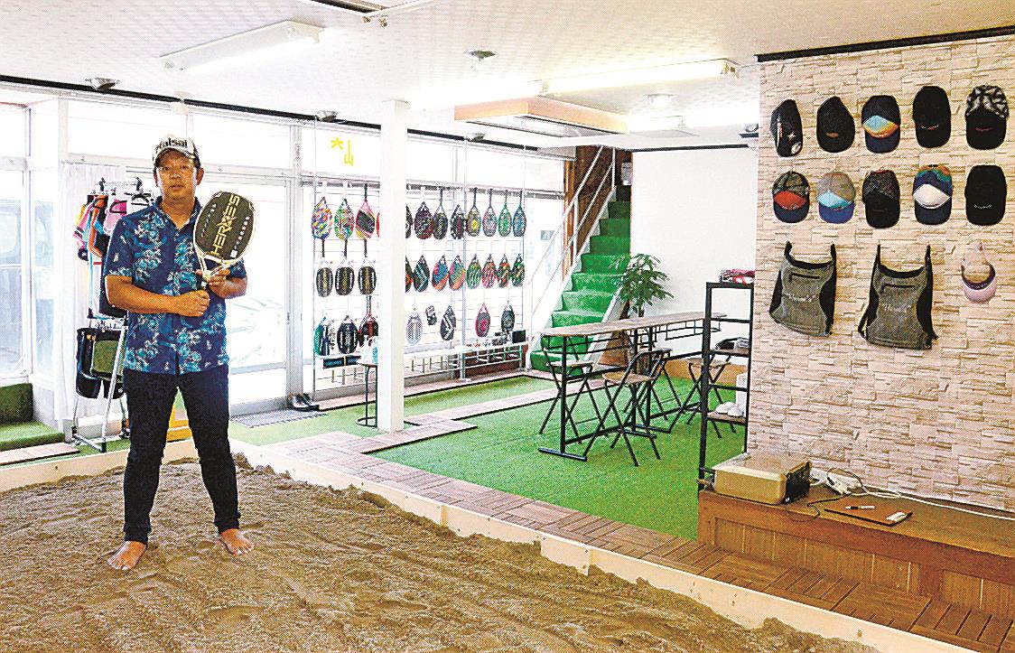 JR山陰線中山口駅に近い大山町田中の空き店舗(床面積約50平方メートル)を借りて知人らと改装し、7日に仮オープンした。ビーチテニス専用ラケット「パドル」やウエアなどを扱う。当面は予約制で客を迎え、商品群や店員が充実する8月上旬をめどに定期営業を始める。