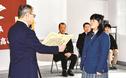 架空請求の特殊詐欺被害を防いだとして、大田署が19日、ヤマダデンキテックランド大田店(大田市長久町)のパート従業員中田貴美子さん(51)、同社社員中井健太さん(34)、同糸原淳さん(43)に感謝状を贈った。