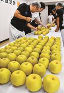 鳥取県特産・二十世紀梨の露地物の査定会が20日、主産地の同県湯梨浜町内であった。20...