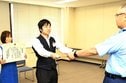 同署であった贈呈式には、中田さんと中井さんが出席。吾郷弘章署長から感謝状を受け取った中田さんは「表情がおどおどしていて声をかけた。今後もお客さまをよく見て接客したい」と話し、中井さんは「お客さまに気軽に相談してもらえるようにすることが詐欺被害の防止にもつながる」と強調した。