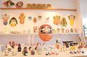 出雲の張り子の虎は年賀切手のデザインにも採用された。懐かしい玩具をはじめ、菅原道真がイノシシや虎に乗った人形、3センチほどの寝転んだだるまなどユーモアのある人形も並ぶ。