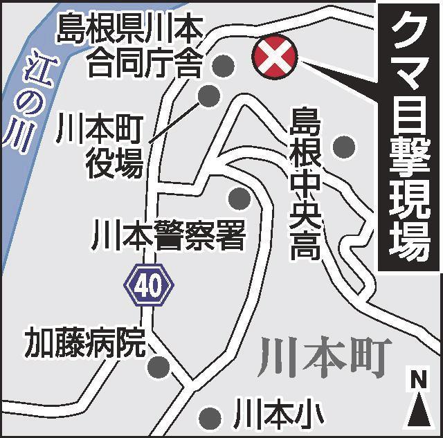 目撃場所から直線で約60メートル先に校庭がある島根中央高校は同日午前の校庭利用を控え、生徒に集団での登下校を呼びかけた。