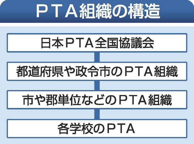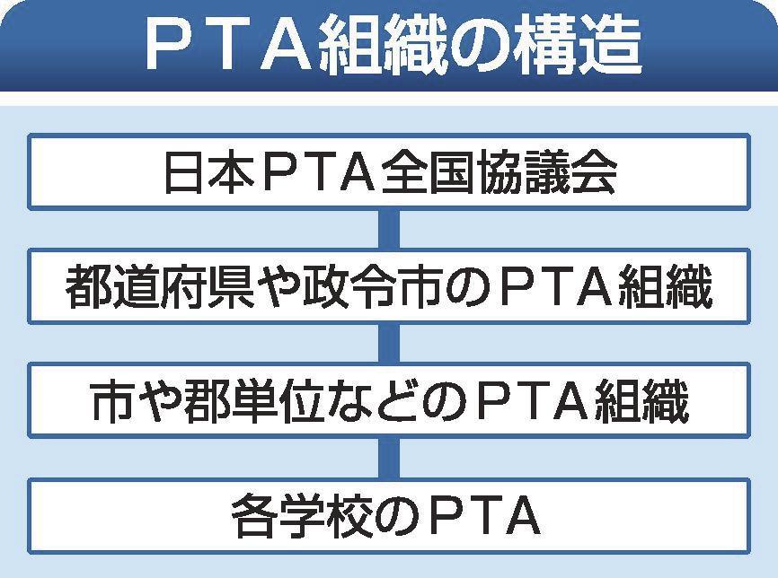 PTAは各学校、市町や郡、都道府県、全国組織のピラミッド構造になっている。都道府県組織は、市区町村の運営支援や都道府県教育委員会への要望活動などを担う。岡山県PTA連合会の解散は、各学校単位の会員数減少に伴う市単位の団体の退会が影響した。山陰両県でも会員数の減少で学校単位の組織が解散し、上部組織を退会するケースが出ている。