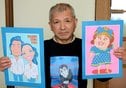 丸山さんは20代を過ごしたスペインでガラス絵と出合い、創作歴50年。同会場では15回目の個展で、「かわいいと、心を和ませてもらえたらうれしい」と話した。