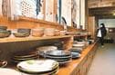 島根さんは粘土を工夫し、じか火で料理ができる土鍋や片手土鍋などを用意。釉薬の原料を地元産にこだわり、わらやモミを入れ、薄い緑色に焼き上げた皿、シジミの殻や来待石を使った作品も目を引く。