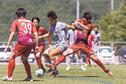 ポスターは21日から始まる「秋の全国交通安全運動」に合わせて制作した。島根県内の人身事故の約9割はドライバーの前方不注意が原因のため、ボールから目を離さずゴールを守るディフェンダーの長谷川翔平さん(31)をモデルにした。