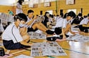 記事の見出しやリード(第1段落)、本文の役割に加え、大事なことを先に伝える「逆三角形」の構成で書かれていることを学習。記事を読んで実際に見出しを考えたほか、1面から見出しとリードに目を通す読み方も学んだ。