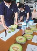 字彫ったメロン収穫 安来・井尻小児童