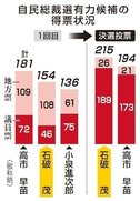 青木、赤沢、舞立、藤井氏 1回目から石破氏に 山陰 2024/9/28 04:00 保存 島根、鳥取両県連所属の国会議員は、青木一彦参院議員(鳥取・島根合区選挙区)、赤沢... 残り373文字(全文:414文字) 続きを読むには会員登録が必要です 無料会員に登録する ログインする 保存 記事を保存する この機能は有料会員限定です。保存した記事やフォローした特集をマイページでご覧いただけます。 有料会員になる ログイン 関連記事 石破氏 「集票期待」で上積み 得票分析 2024/9/28 04:00 「派閥回帰」の流れ鮮明 尾を引く裏金、危うい船出 2024/9/28 04:00 自民 窮地に頼みのカード 新総裁に石破氏 2024/9/28 04:00 首相がゴールではない 石破茂新総裁 〈鳥取発〉記者の視点 2024/9/28 04:00 自民総裁選 乱戦のあと 鳥取初の首相誕生〈上〉 石破茂氏 執念の逆転劇 議員票積み 5度目で結実 2024/9/28 04:00 特集・連載 学生に島根の会社紹介 12月27日、松江でジャンボ企業博 2025/12/8 04:00 客前で切り替わる「スイッチ」 テーマに合わせ「演じる」 コンカフェ店員の女子大生(中)〈顔なき…声〉 2025/8/13 05:00 領有権確立、進展ないまま 竹島の日、22日で20回目 2025/2/22 04:00 国要望が頓挫、独自条例へ 「竹島の日」条例制定尽力の故上代県議 住民の声、怒りを原動力に きょう20回目竹島の日 2025/2/22 04:00 スサノオマジック「フェイスタトゥーシール」販売決定! やっぱり、しまねがいい。Uターンして気づいた暮らしの豊かさ。浜田市にUターンした渕上さんの話。 地元で育つミライのチカラ 島根県立江津工業高校 地元で育つミライのチカラ 島根県立邇摩高等学校