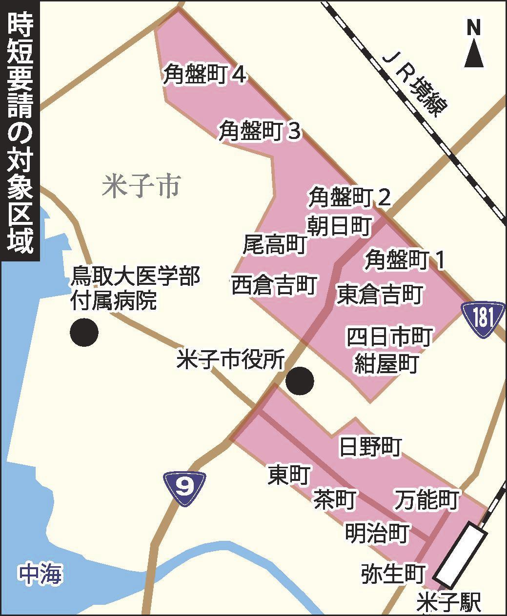米子市内で新型コロナウイルスの感染が急拡大したことを受け、鳥取県は19日、市内飲食店約600店舗に対し、営業時間を午後8時までに短縮するよう要請した。JR米子駅前と市繁華街がエリアで、期間は連休前の21日から8月3日までの2週間。応じた場合、日額最大20万円の協力金を支給する。時短要請に踏み切るのは山陰両県で初めて。