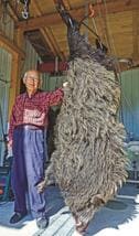 体長185センチ、胴囲130センチ、推定体重130~140キロのオスの大イノシシが鳥取県江府町の山中で捕獲された。2年前に「山の主」と話題になった巨大イノシシと同じ山で、ジビエ加工を手がける地元有志グループ「奥大山地美恵(じびえ)」(浦部二郎代表)が仕掛けたわなにかかり、「兄弟か」と話題になっている。