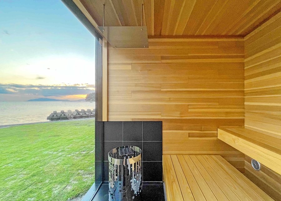 サウナは、加熱したサウナストーンに水をかけて熱い蒸気を発生させるフィンランド式の「ロウリュ」を導入。水風呂に、外気浴のスペースもあり自然の景色を眺めながら楽しめる。
