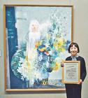 「群泳」の松岡さんに賞状 足立美術館賞を受賞