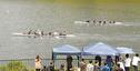 第40回松江市民レガッタが5、6の両日、5年ぶりに大橋川で開かれた。参加した76クルー約500人が熱戦を繰り広げた。