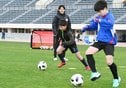 小学校に入る前の女児向けサッカー教室が6日、浜田市野...