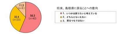 「いつかは戻りたいと考えている人」が56.3%、「どちらともいえない」が32.4%で、計88.7%(63名)がUターンの可能性を頭の片隅に置いていることが分かります。
