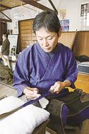 鳥取県日南町霞の町美術館で日本刀の研師(とぎし)、森井偲訓(しくん)さん(77)=米子市=と息子2人...