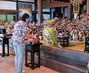 保存会はこの日、10代から80代までの12人で上演した。人形や舞台の小道具など全てが会員の手作りで、上演後は参加者に人形の操り方を教えた。会の原洋子副会長(76)=出雲市大社町杵築西=は「伝統文化を後世に伝え、観光にも生かしたい。多くの人に関心を持ってほしい」と話した。