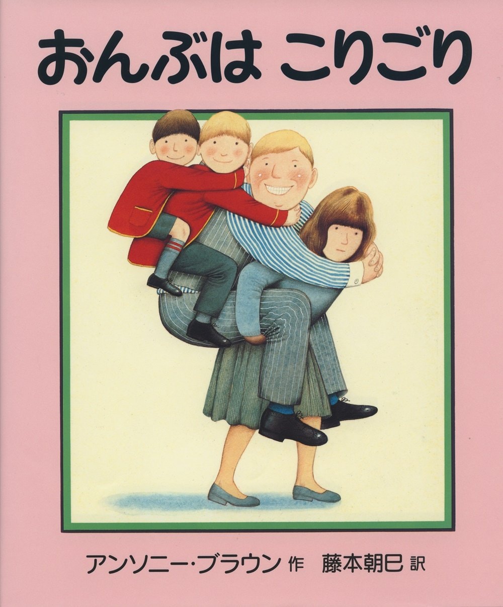 作中はかわいいブタの絵がたくさん隠し絵のようにちりばめられています。絵本の原題は「PIGGYBOOK(ブタの本)」で、「piggy back(おんぶ)」とかけてあるようです。他にもいろいろな仕掛けがあります。風刺の効いた、ユーモアあふれる絵本を親子で楽しんでみてくださいね。
