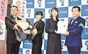 松江市袖師町の松江署であった贈呈式で、松江土建の平塚智朗社長は「将来を担う子どもの命を守るのに役立ててほしい」と話し、市交通安全協会の三島進会長は「寄贈されたチャイルドシートを市民に広く使ってもらいたい」と感謝した。